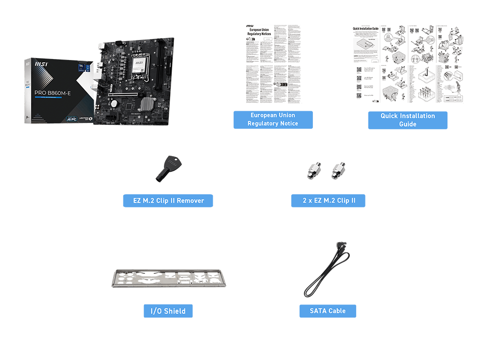 | Slot | 1x PCI-E x16 slot (Qty)1x PCI-E x1 slot (Qty)PCI_E1 Gen PCIe 5.0 supports up to x16 (From CPU) PCI_E2 Gen PCIe 4.0 supports up to x1 (From Chipset) |