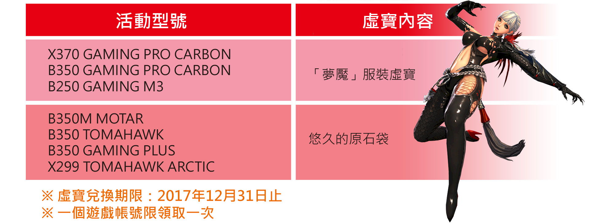 - ※ 活動期間購買之指定商品,如有申請換貨事宜,不可重複兌換贈品;如有申請退貨事宜,活動贈品須逕行退還微星科技且不受活動時間限制。退還之贈品,如有損毀或遺失等情事,須以原價像微星科技購買,微星科技保留法律追訴權。
