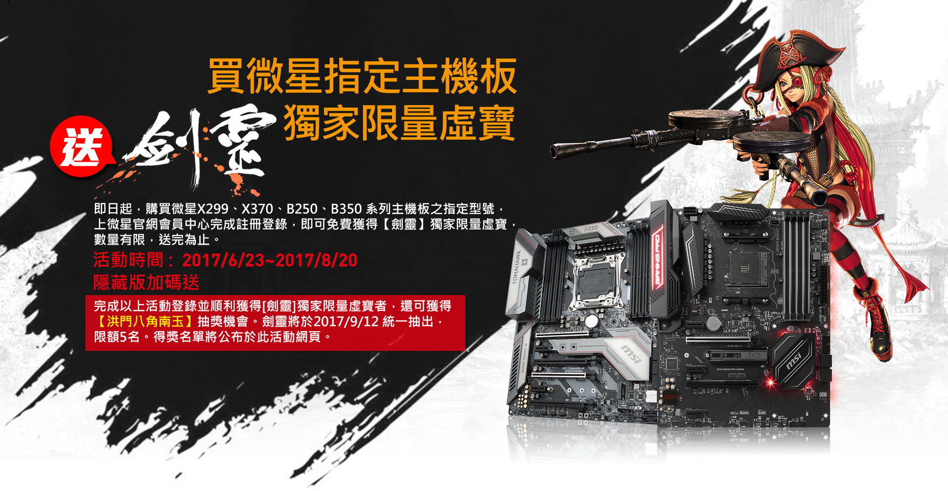 - ※此贈品活動對象僅限台、港、澳地區最終消費者,任一申請資料(如申請人、聯絡人、買受人、市內電話、手機、地址等)為經銷商、代理商、原廠相關資料者,恕無法參與本活動。為維護消費者權益,本活動恕不接受代理申請。申請文件若有造假不實者,微星有權取消活動參加資格;偽造作假文件者,需自負法律責任。