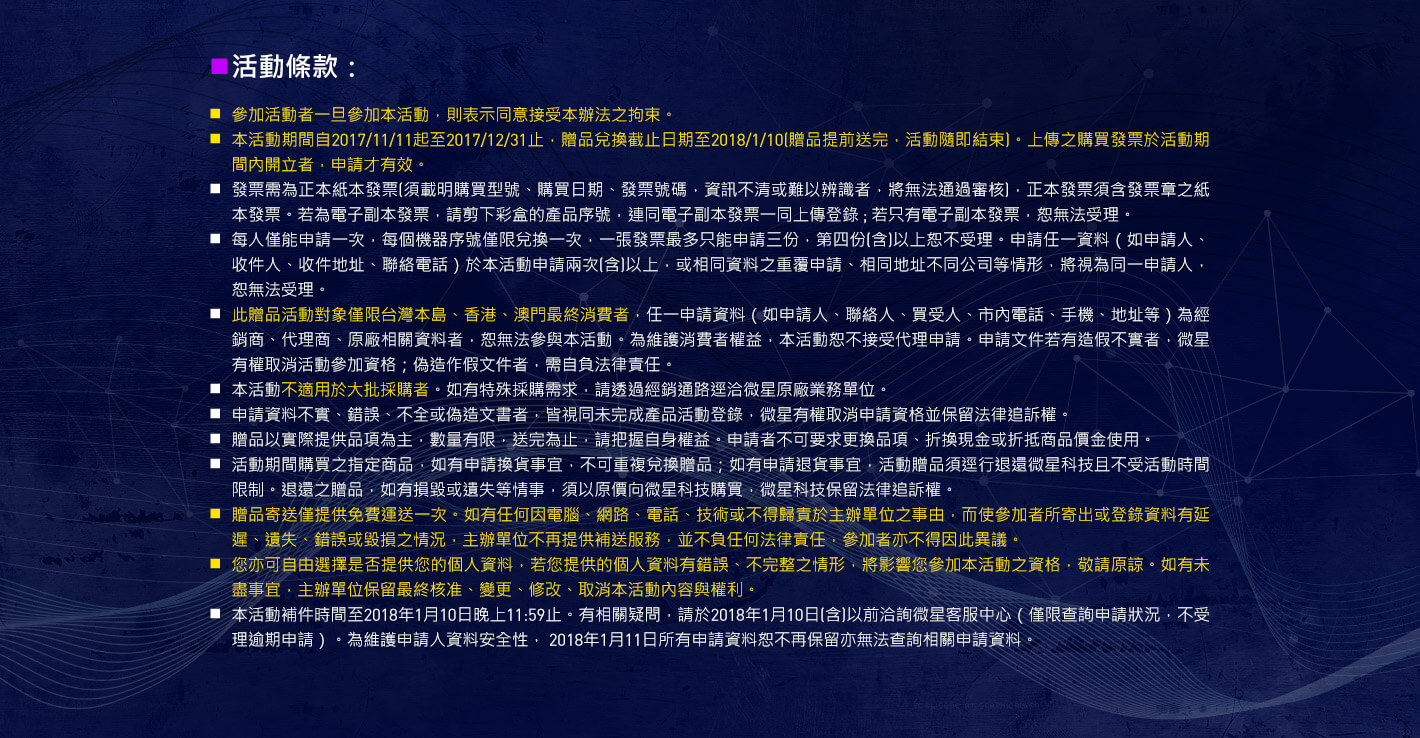 X 前往微星官網登錄會員帳號,若非會員,請先加入微星會員。http://register.msi.com 註冊購買之MSI主機板指定系列 點選《光棍有禮》活動,登錄主機板產品序號與購買發票。 (需清楚顯示發票號碼、購買日期及產品名稱) 登錄完成,微星官方審核正確無誤之後, 將由微星科技寄發贈品。