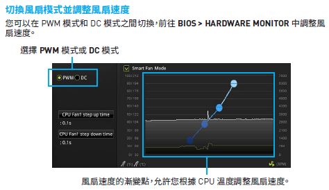 可以,請進入BIOS > Hardware Monitor 中,把 "CPU 1" 從 "PWM" 調整為 "DC" 模式,就可以控制三孔 CPU 風扇的轉速了。