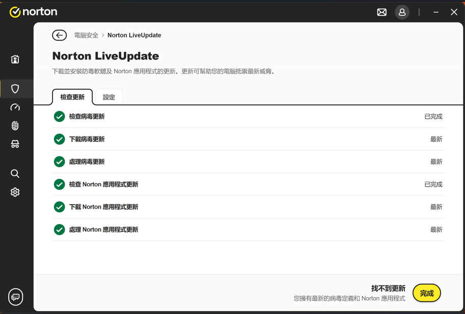 至Norton LiveUpdate 執行更新,確保Norton 已是最新版本。