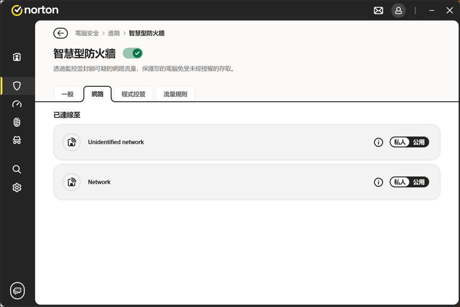 將 Smart Firewall 網路模式設為私人: