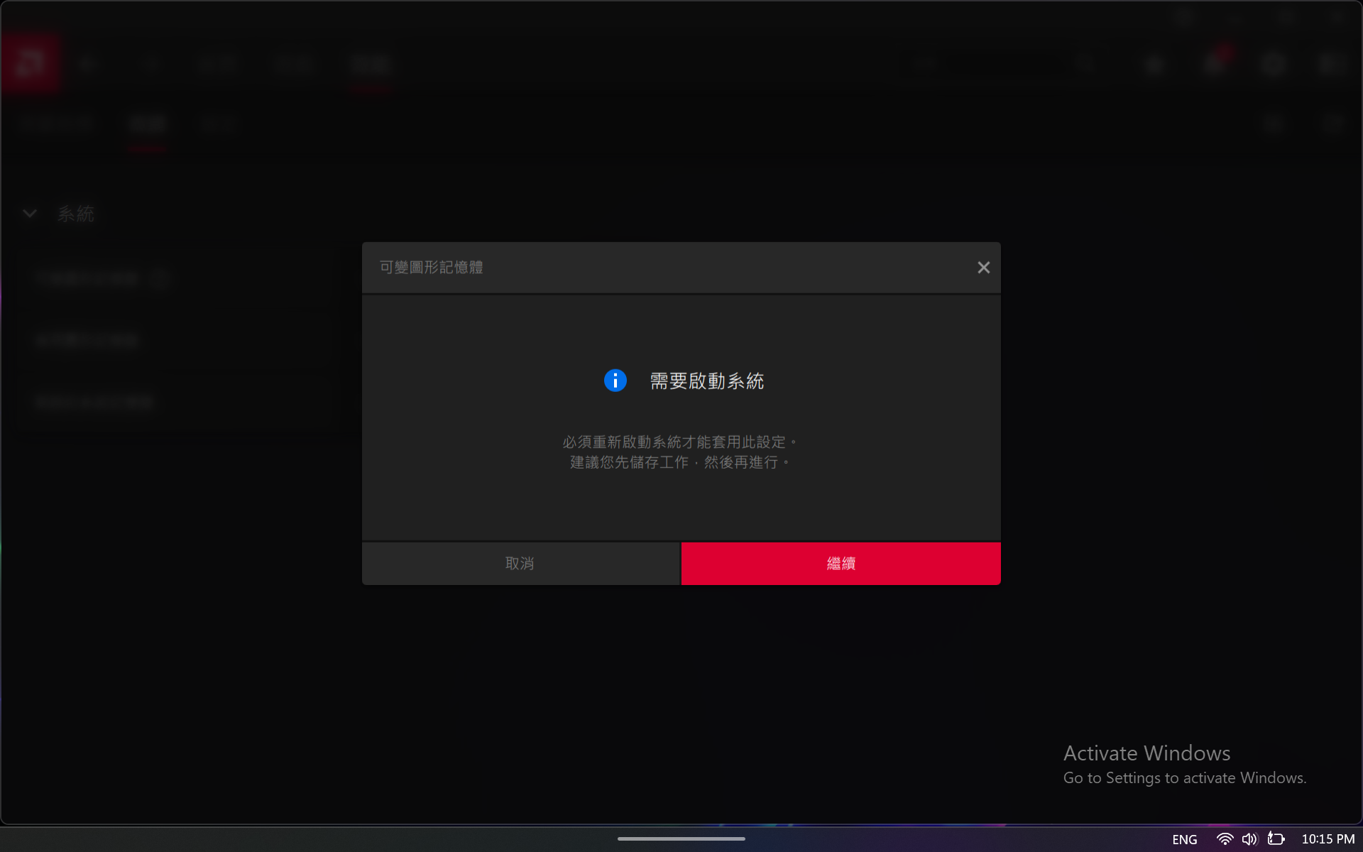 1.在調整顯示專用圖形記憶體大小之前,請先儲存所有未完成的工作;若修改後出現不穩定或錯誤,請將其回復為預設值(8 GB);