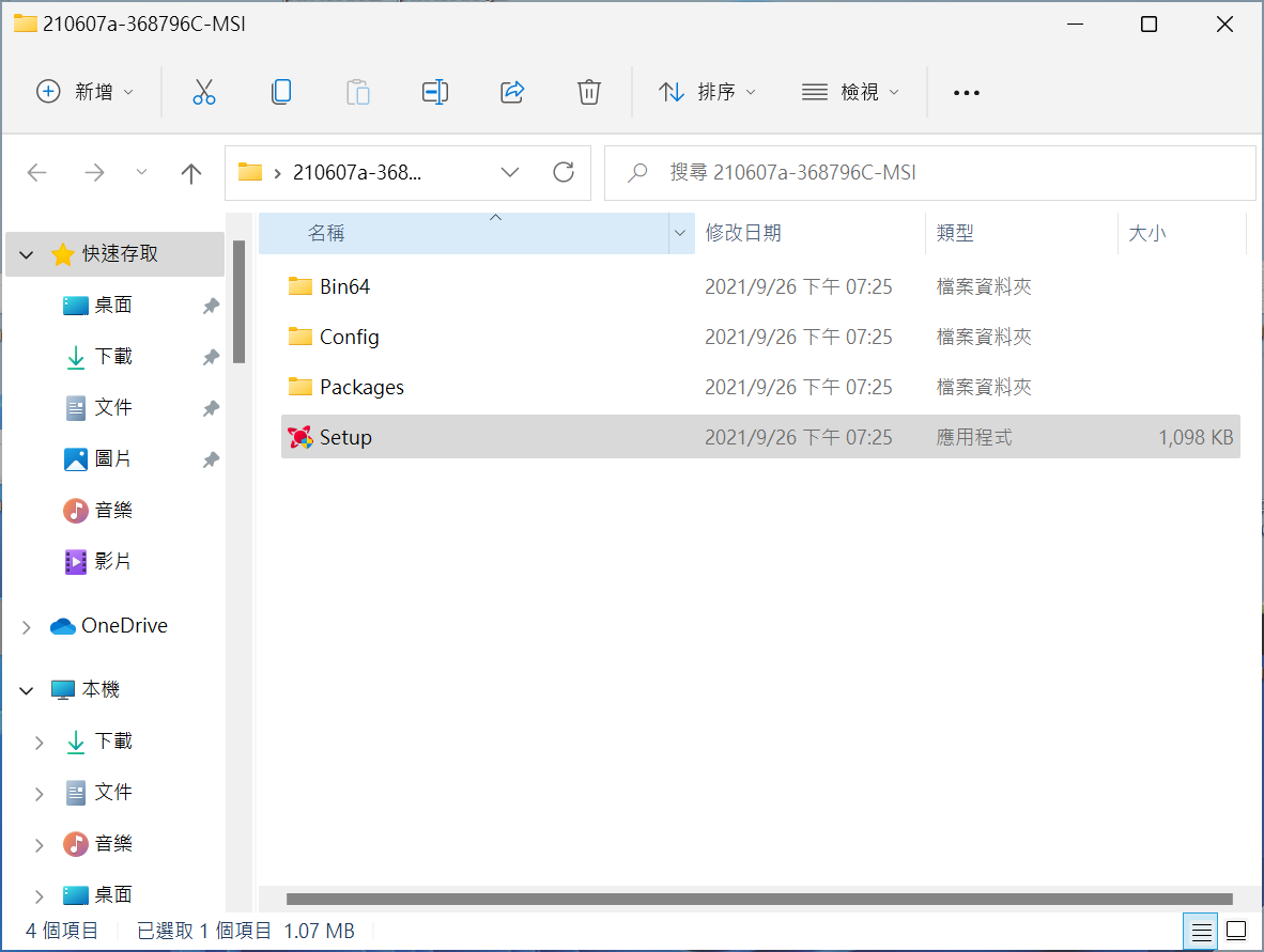 1. 開啟從MSI官網下載的最新版顯示卡驅動安裝包,並執行根目錄下的「Setup.exe」檔。