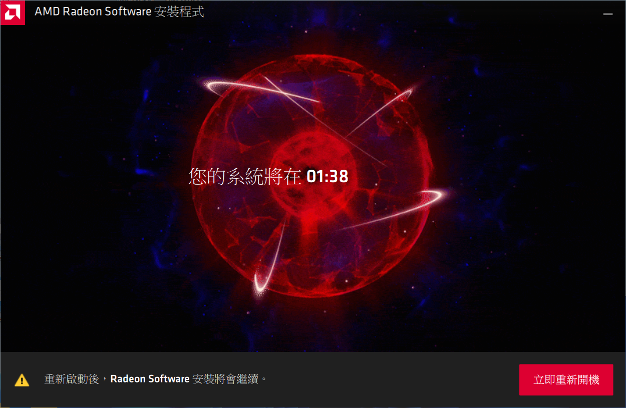 3. 當移除程序完成,點擊「立即重新開機」重啟系統並繼續安裝驅動,否則系統會在2分鐘後自動重啟。