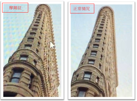 當在低解析度筆電螢幕或是外接螢幕(FHD)上播放高解析度(4K)影片時,會出現類似干涉條紋的現象,又稱作摩爾紋。面板解析度和影片內容的解析度之間的落差會導致出現解析度補償而出現摩爾紋,此為正常的現象。於縮小化窗口下撥放影片時,解析度補償會更加明顯。